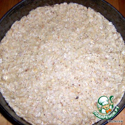 Сперва разогреваем духовку (200 С) и делаем тесто. Для этого берем сливочное масло, муку, овсяные хлопья, 1 яичный желток, соль на кончике ножа.