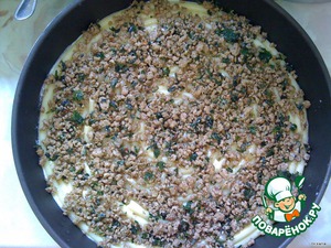 фарш, на фарш макароны, крем, макароны, фарш ,макароны,и последним слоем крем