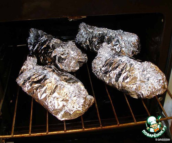 Берем фольгу, сворачиваем в два слоя и делаем такие кармашки, берем с запасом, т. к. верхушку нужно нам будет закрыть, когда кармашек заполним. |