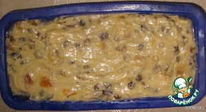 Добавить курагу, изюм и орехи (немного орехов оставить для посыпки), хорошо перемешать.