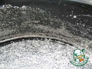 Тщательно смазать сливочным маслом форму диаметром 20 см, посыпать сахаром так, чтобы покрывал донышко и бортик. Перевернуть форму, чтобы вытряхнуть излишки сахара.