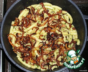 Добавьте заранее поджаренный лучок и подавайте к столу. Как видите, всё безумно просто!