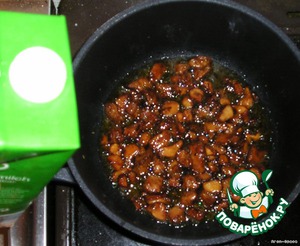 Когда грибочки поджарятся и приобретут коричневатый оттенок, влейте в них свежее молочко или сливки. Варите до тех пор, пока молочко не загустеет.