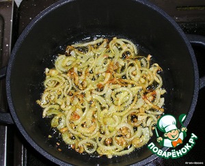 Пока жарятся грибочки, отварите рожки или спагетти.