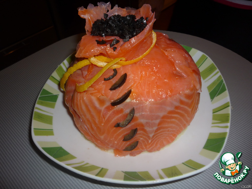 Я сварила рис, натерла сыр, нарезала свежего огурчика и сладкого перца, перемешала с майонезом и просто выложила общую массу горкой. А горку потом украсила, как это сделала автор. Получилось по крайней мере гармонично по вкусу. Картофель с красной слабосоленой рыбой я не рискнула смешивать, мне кажется, получилось бы не очень. Но я могу ошибаться, конечно)