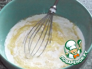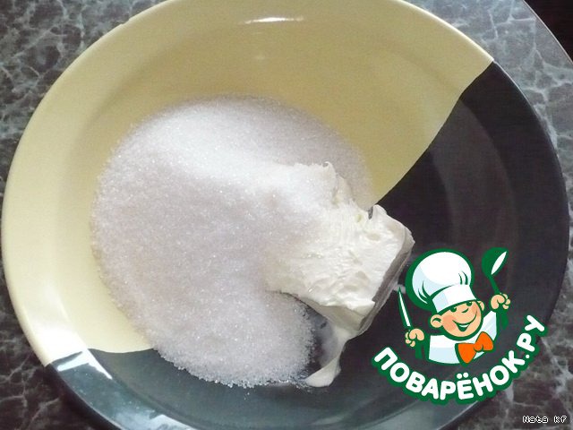 Добавляем к ним сливки, оставшийся сахар и хорошо размешиваем до однородной массы.