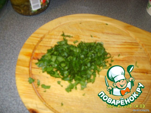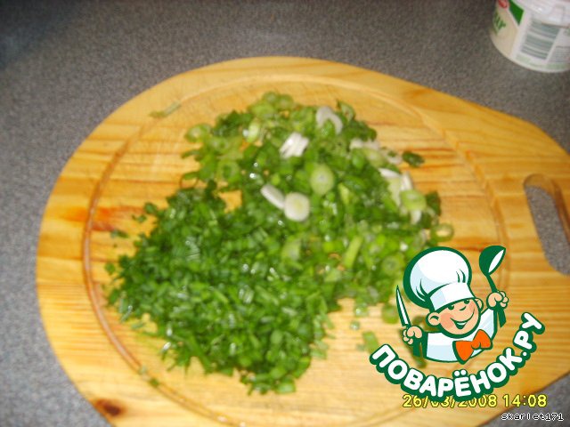 Мелко нарезаем зелень.