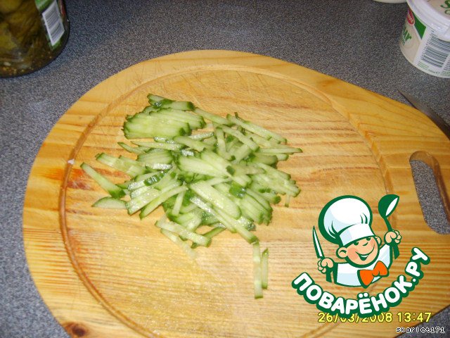 Соломкой порезать свежий огурец.