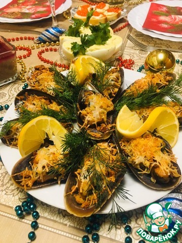 Рецепт «Мидии, запеченные в чесночном маринаде»: