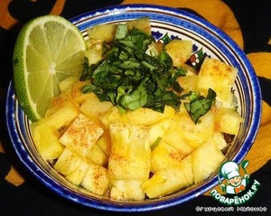 • Соком из одной половинки лайма поливаем ананас в пиалах.