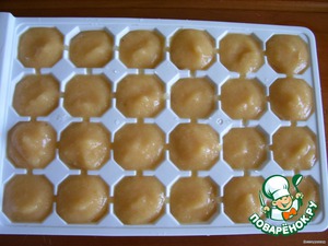 Раскладываем наше пюре (умопомрачительной, кстати, вкусноты) в формочку для льда, ставим в морозилку и забываем на некоторое время.