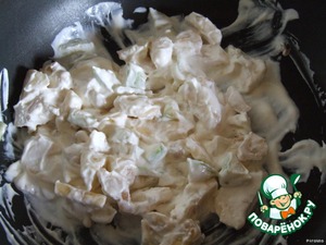 Потрясающий запах, летающий по кухне, привел моего любимого, который попросил сделать с небольшой кислинкой десерт... И я добавила в эту смесь лимонный сок ;-). В общем, когда сметана загустела и появился немного коричневатый оттенок, я добавила сахар и все хорошо перемешала.