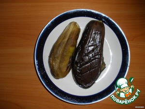 Отварить баклажаны в соленой воде в течении 10 минут, дать стечь воде.