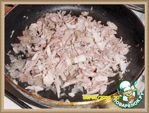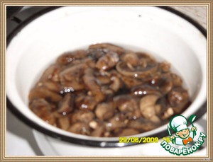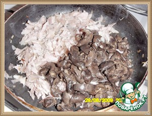 И отварные грибы, все хорошенько потомить в небольшом количестве растительном масле. Посолить, поперчить..