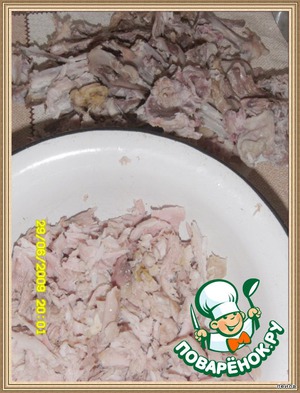 Собрались кусочки курицы, вполне подошли для этого обеда, и не только)))отварила, очистила от косточек.