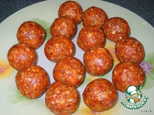 По рецепту Евгении с форума "готовим дома". Очень вкусный десерт, достойная и полезная замена конфетам. По желанию шарики можно обвалять в измельченных орехах, получится еще вкуснее.