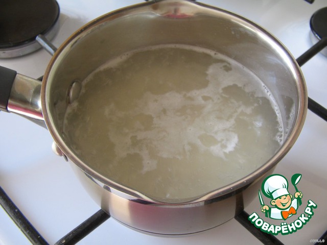 • Рис положить в кипящую подсоленную воду и варить до полуготовности. Не сливать.