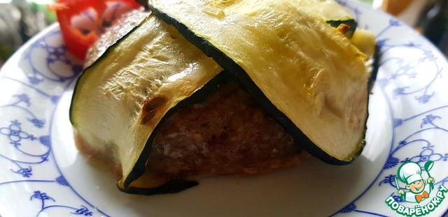 Из фарша сформировать бургеры и обернуть их ломтиками цуккини.