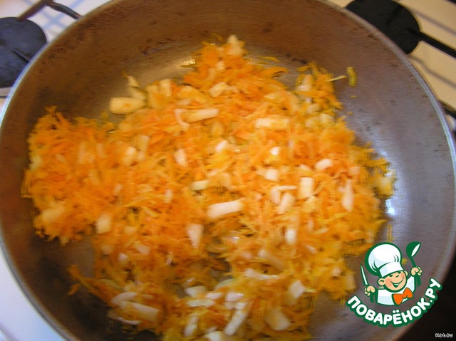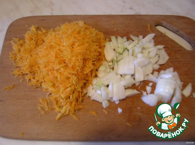 Лук порезать мелко, морковь натереть на мелкой терке.
