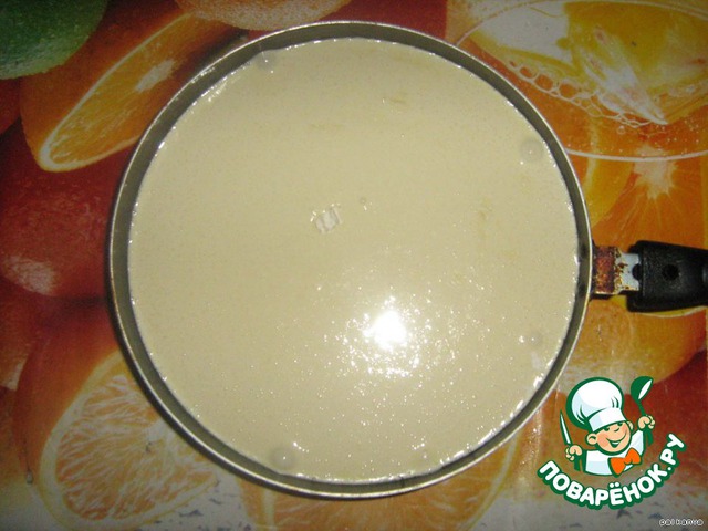 Взбить 4 желтка с 10 ст.л сахара и пачкой ванилина. Получившуюся смесь вылить в молоко. Помешивать до загустения на маленьком огоньке.