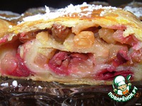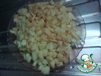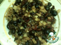 Как и во всех рецептах Ирины, яблоки заранее не обжаривала. Смешала яблоки с размороженной вишней, добавила сахар, корицу и ром. А также вяленую клюкву.