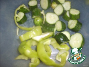 Режем огурцы и богарский перец НЕ ОЧЕНЬ МЕЛКО.