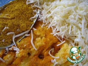 Добавим "карри", "куркуму", сыр, сахар и перемешаем.