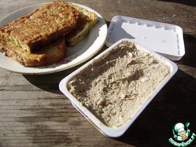 Мажем на хлебушек, можно сверху полосочку сыра и в духовку!