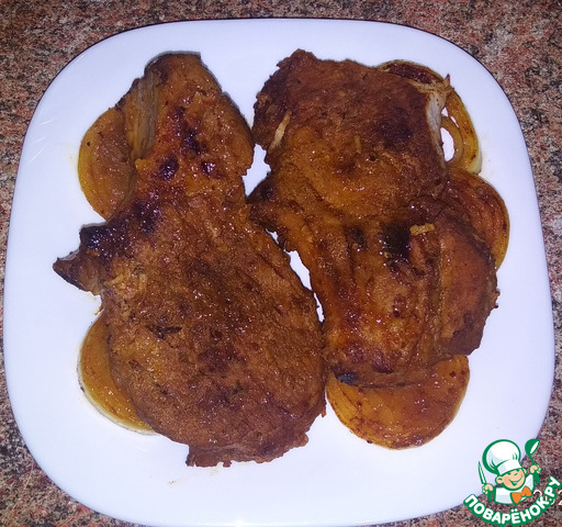 Свиной ошеек нарезать на куски, как для отбивных, толщиной 2-3 см.