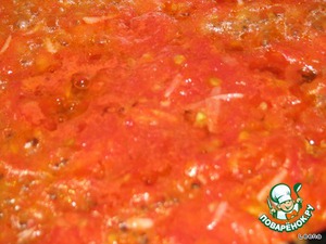 • На сковородку наливаем растительное масло и тушим нашу помидорно-чесночную смесь 3-5 минут.