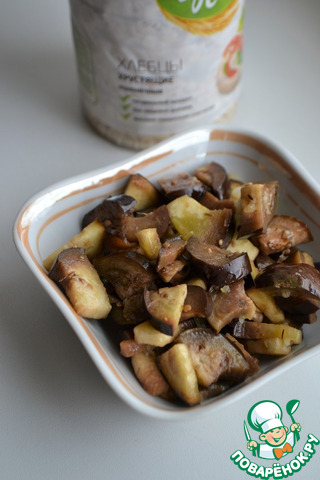 Баклажаны (я взяла 2 штучки небольших) от шкурки не очищала, запекала 20 минут (можно было бы и подольше, чтоб прям до мягкости). Ела с хлебцами. Впервые попробовала зиру - не понравилось. Лучше без нее.