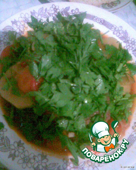 И очень обильно посыпаем рубленной зеленью петрушки.