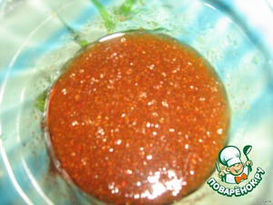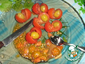 Делаем соус - масло, уксус, мёд, соус, перец - перемешиваем.