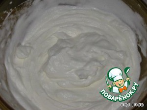 Взбить сливки до мягких пиков,по желанию можно добавить сахарную пудру