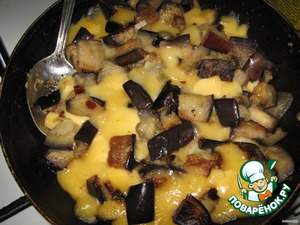 Очищаем зубчики чеснока, режем пополам. На сковороде подогреваем растительное масло, обжариваем чеснок, вынимаем. Выкладываем баклажаны, обжариваем. Тем временем режем кубиками сыр. Снимаем сковороду с огня и сразу же выкладываем сыр и перемешиваем. Сыр "поплавится". Если вы любите поострее и вас не смущает чесночный запах - то чеснок можно просто раздавить прессом и добавить в баклажаны. Также можно добавить специи по вкусу. В итальянском рецепте "прародителе" использовалось "орегано", но мне эта травка не понравилась.
