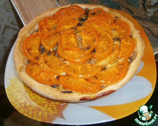 Да, любители майонеза могут смело добавлять немного в начинку и обмазывать пирог поверху (естественно до выкладывания помидор)