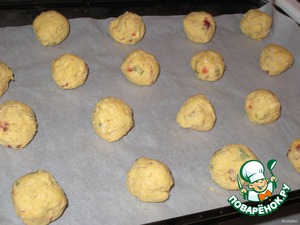 Выпекать до слегка золотистого цвета 13-15 минут, в зависимости от размера. Я делала очень маленькие, шарики в 2 см диаметром.