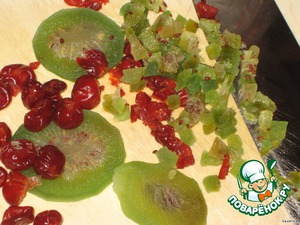 - Цукаты (у меня киви и вишня в равных количествах ) — 80-100 г