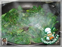 На сливочном масле в сковородке припускаем шпинат, в конце добавляем немного мускатного ореха |