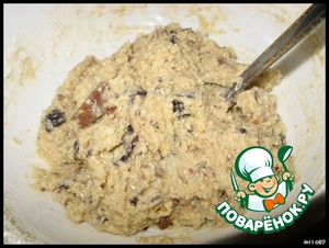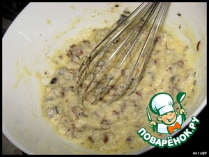 Ореховую и шоколадную крошку добавляем к масляной смеси.
