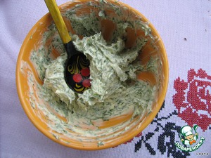 Вынутое из маринада филе высушиваем на бумажном полотенце и наносим щедрой рукой масло.