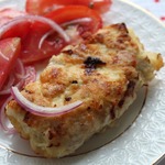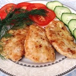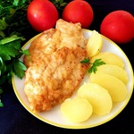 Я мариную отбивные грудки в соевом соусе с горчицей +смесь перцев.Затем окунаю в яйцо и паниров сухари. Моей семье нравится.