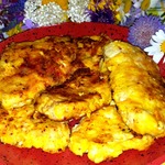 Рецепт я немного переделала, смешала кляр ( причем в него добавила соль, перец и все специи, причем норму горчицы увеличила, мы всегда мясо в горчице маринуем - это вкусно)и закинула туда отбитое филе. Дать бы ему постоять подольше, но хотелось кушать - поэтому простояло филе в кляре полчаса.