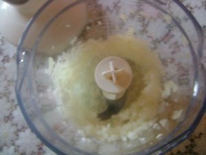 Лук измельчить в блендер