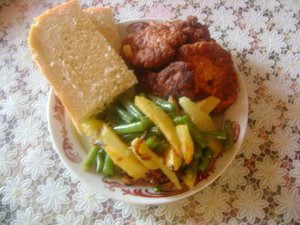 Для гарнира: отдельно пожарить картошку с луком и фасоль, затем перемешать. Подавать с котлетками.