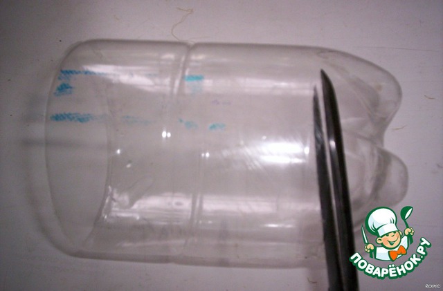 - обрезать у пластмассовой бутылки верх и дно (см. пошаговые фотографии)