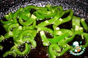 - болгарский перец порезать соломкой, обжарить на подсолнечном масле , посолить