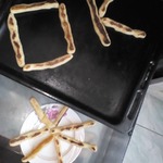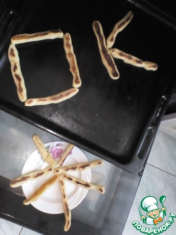 Лепим палочки,укладываем на противень и смазываем желтком.Запекаем при 180 градусах 20 мин.