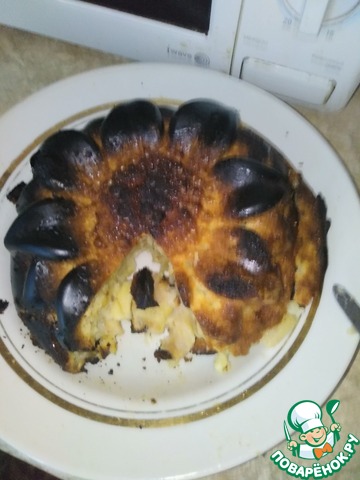 Выкладываем в форму, смазанную маслом и посыпанную мукой и ставим у разогретую духовку на средний огонь до готовности