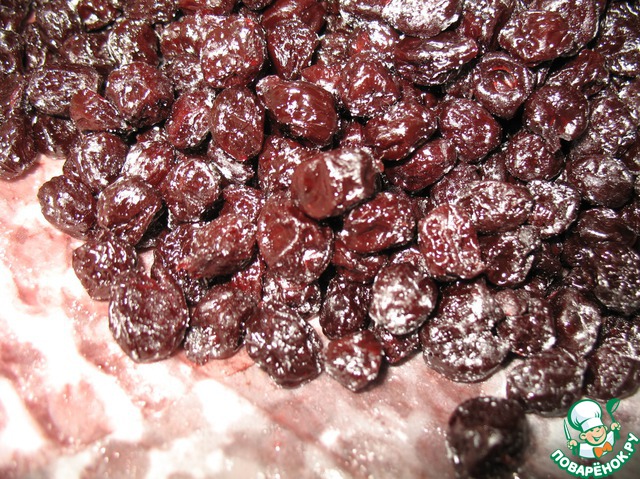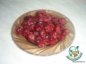 У нас сейчас, как раз, пора разных ягод. Купили мы вишен, немного я заморозила, а из остального решила сделать что-то. Компоты, варенье и прочее у меня не едят. Естественно полезла я в инет и нашла несколько рецептов, в закладках на мемори, вишневых цукатов. Понравился мне только один, вот я его сделала и предлагаю его вам, может кто и воспользуется. Процесс конечно занимает немного времени, но он не трудоемкий. Такую вишенку можно в пироги класть, торты украшать, просто кушать.